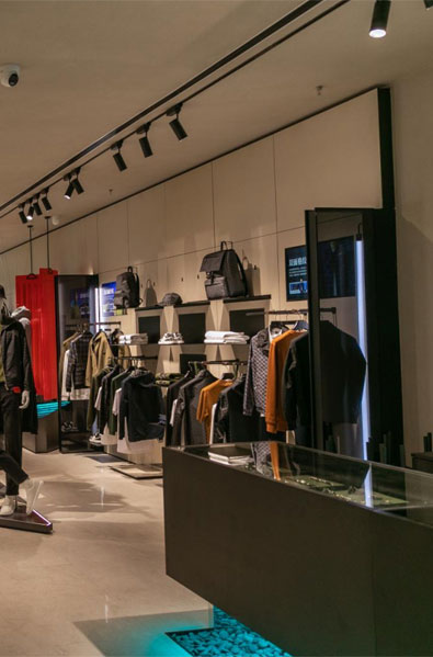 店內(nèi)先鋒產(chǎn)品聚勢集結(jié),在夾克旋轉(zhuǎn)展臺、功能互動展臺結(jié)合呈現(xiàn)。以中國首家